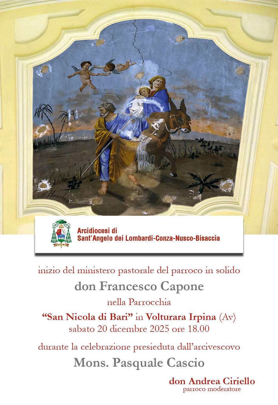 mi rivolgo ancora con gioia a te con la parola che lega la notte di Natale alla sera di Pasqua “Pace sulla terra” (Lc 2, 14) e “Pace a voi” (Gv 21, 19). La Parola di Dio, proclamata nella festa della Santa Famiglia di Gesù, Maria e Giuseppe, nella lettera ai Colossesi (3, 15) ci rassicura: “la pace di Cristo regni nei vostri cuori, perché ad essa siete stati chiamati in un solo corpo. E rendete grazie”. Rendiamo insieme grazie nell’essere famiglia unita nell’amore e nel rispetto reciproco, nell’essere famiglia come Chiesa di Cristo, membra vive del suo corpo, nel sentire l’appartenenza viva e responsabile alla grande famiglia umana. Ascoltando la Parola di Dio scopriamo che la pace è dono di Cristo e chiede di regnare nel nostro cuore come vocazione alla “comunione e all’unità … in un solo corpo”. È il “solo corpo” che si realizza nella coppia unita dall’amore sponsale e coniugale, che si sperimenta nelle relazioni all’interno della famiglia: l’onore è il rispetto per i genitori (cfr. Sir 3, 12), la reciprocità originale è propria tra marito e moglie, l’opera educatrice incoraggiante dei genitori verso i figli (cfr. Col 3, 21). Le relazioni familiari sono la prima testimonianza della Parola di Dio che dimora tra noi nella sua ricchezza fino a rivestirci degli stessi sentimenti “di tenerezza, di bontà, di umiltà, di mansuetudine, di magnanimità” che sono di Cristo e di ogni suo discepolo. La condizione di “discepolo obbediente”, come San Giuseppe, ci tiene svegli nella missione affidataci nei confronti dei membri della famiglia domestica, ecclesiale e umana. L’angelo appare a Giuseppe nel sogno: bisogna svegliarsi e prendersi cura di quelli che il Signore ci ha affidato, essi sono il prossimo nelle declinazioni originali di ogni persona e delle differenti situazioni di vita. Quando ci si mette all’opera per gli altri è sempre ancora notte: “Egli si alzò nella notte, prese il bambino e sua madre e si rifugiò in Egitto” (Mt 2, 14). La salvezza si compie durante la notte e si rivela in pieno giorno, quando il pericolo è fugato nella vittoria. La cura delle persone prossime, fatta per amore, esige prontezza, disponibilità, coraggio e fiducia incondizionata in Colui che ci chiama nel sogno e nel buio. La pace si costruisce con le relazioni pacificate a partire “dal basso” nel senso del cuore umile e personale, per resistere e condizionare con forza evangelica chi “dall’alto” di un potere ingiusto toglie la pace e non la favorisce. Essa non si impone con la forza ma si dona con umiltà per essere accolta nell’umiltà. Questa virtù è terreno impastato dalla rugiada del perdono e della misericordia: l’umiltà è feconda per la capacità di perdonare, “sopportandovi a vicenda e perdonandovi gli uni gli altri, se qualcuno avesse di che lamentarsi nei riguardi di un altro” (Col 3, 13).
